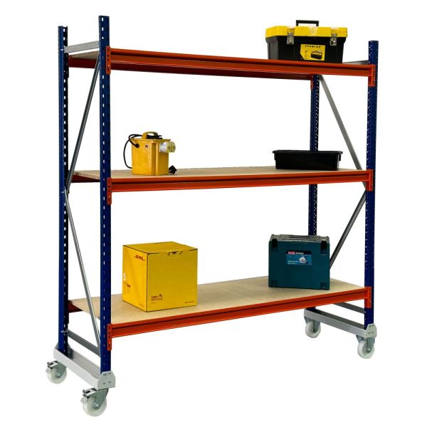 The advantage of the durability of a longspan shelving system but with the flexibility of move the shelving bay to your desired location.